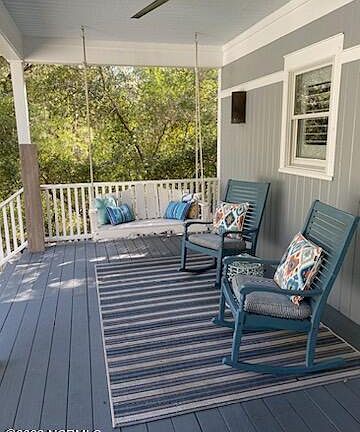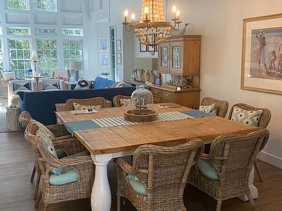 Magnificent home among the trees and backing to the dune ridge! Beautifully renovated kitchen is totally inviting to the best chefs! Excellent storage in the laundry room and newly custom cabinets in kitchen and laundry. Two bedrooms, including the master bedroom are on the first floor just off the soaring ceiling in the living room overlooking the forest beyond. Open living areas beg for entertaining and gathering! Two screened porches off the side and back of the house extend the living quarters. Two more bedrooms and baths plus a custom designed office space and open gathering room upstairs offers extra space for visiting family and friends. The inviting front porch has plenty of room for watching wildlife and the rain under the protected roof covering. Outside shower and detached garage houses two (4 seater) golf carts that convey. House equity membership available for separate purchase. Exclusion list provided.