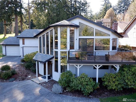 Amazing location, views, and home at this desirable Gate-1 property. The property lies adjacent to the golf course (10th green) and has a wonderful setting, with views over the front 9 holes to Lake Whatcom at the front; and of the golf course at the rear. The home has vaulted ceilings, large windows, new front & rear decks, & wood burning fireplaces in the Living Room & Master Suite. The Master Suite has en-suite bath with separate tub and shower & a his/her walk-in closets. A must see home!