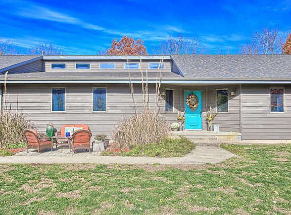 Sprawling 1 story home on 1.2 acres of ground that has super views of the river! Feel the attention to detail as you enter on to the hardwood floors and into the spectacular, vaulted Family room with skylights. Tall custom Fireplace sets the tone in this Enormous room. Large windows abound everywhere letting so much natural light in you feel like you are outdoors. Step into the expansive Kitchen with Stainless appliances and room for all your cooking projects, including a huge walk in pantry! Take a break in the brand new 4 season Sunroom that has amazing views of the land and all the nature that goes. Dont miss the Spa Bath in the Master bedroom. No home at this price has such a fine Spa Bath. For all your extra stuff or man cave, check out the Extra 1.5 car garage. Enjoy the numerous flowering trees and an abundant harvest from the many fruit trees, apple, peach, pear & cherry. This home is amazing in all details. You will not be disappointed. Come see it today!