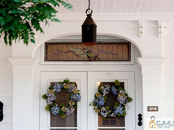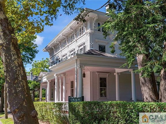 9 Park Place East celebrates the era when architecture was art. Built by Samuel Jernee, circa 1860, as his personal residence, no expense was spared to provide such amenities like formed crown mouldings and columns, as well as exterior features like gazebo styling within the wraparound porch. In the heart of Cranbury's historic district, the exterior and interior architectural integrity has been maintained. This stunning Victorian, set amidst the quaint bustle of Cranbury borough, will transport you to a bygone era of gracious living. Historic charm abounds from the stained glass transoms and wraparound front porch, to the antique crystal chandeliers and decorative columns throughout the living and dining rooms. Enjoy a good book in the library with plenty of natural light and decorative fireplace, or sip on morning coffee and afternoon sweet tea in the main living area with functional gas logs. En route to the kitchen with vintage wood burning stove, pass through the butler's pantry which is both practical and pretty. Further down the hallway, the laundry area is concealed behind bi-folding closet doors, and the full bathroom with walk-in shower stall is conveniently located near the private backyard entrance. Upstairs, plantation shutters are featured in the primary bedroom and spacious full bath with double linen closet. The windows in bedroom #2 overlook the pool and quiet side street, bedroom #3 includes a built-in picture ledge, and guests of all ages will appreciate the tree-house effect from the real wood paneling in bedroom #4. Another set of stairs leads to the attic on the third floor, which consists of three multi-purpose rooms with large closet area and wall of windows. Outside, enjoy the privacy and the sensations of changing seasons with chestnut trees, mature hydrangea bushes, tall bamboo grasses, and fenced-in pool with diving board. Centrally located in New Jersey between New York and Philadelphia with nearby community parks, restaurants, and market venues, 9 Park Place East is a lovely fit for all your needs and interests.