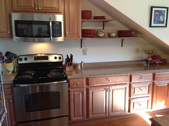 Sunny, quiet 1 bedroom with office/craft room, kitchen with SS appliances, recently renovated and very clean. Located in a 2-unit home on a residential dead end street with private parking. This is a second level apt. with its own entrance, large sunny deck, and w/d hookups. Rent includes heat, cable TV, internet and plowing. Just minutes to Rt 95, Navy Yard and Portsmouth. 1-year lease and credit check required. Sorry, no pets and no smoking. Includes Heat, Cable, Internet, Plowing, Lawn Maintenance, private parking Tenant responsible for garbage, electric