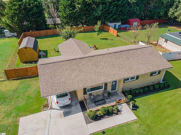 Wow, this amazing BRICK RANCH has seen a FULL REMODEL and now features an OPEN FLOOR PLAN, super CUSTOM UPDATES, and a SCREEN PORCH that will knock your socks off. You gotta see this home! It has a cozy factor you will not believe! Walk into an open living room with plenty of NATURAL LIGHT from the large scenic window - this room flows seamlessly into CUSTOM KITCHEN with a large eat-at ISLAND. Lots of GRANITE makes the kitchen look great, and there are plenty of cabinets and counter space. Microwave pulls out from the island for greater access. REFRIGERATOR will convey makes it move in ready! Lots of engineered HARDWOODS in the kitchen and living rooms, plus you will find HARDWOODS UNDER THE CARPET in hall and bedrooms. Check out the detail in both CUSTOM BATHROOMS lots of stylish ceramic tile throughout and nice fixtures. But step out on the back SCREEN PORCH for your own little piece of heaven wonderful woodworking had yielded a vaulted ceiling and a cozy factor your will not believe. Hang out back here, enjoying the PRIVACY, and overlooking a large back yard that backs up to mature trees. Morning coffee, birdwatching, and nice sunsets all are favorites on this porch! Off the screen porch is a handy grilling deck. A NEW FENCE was put in last year and has a fresh coat of stain. Also in the back yard is a 10 x 20 OUTBUILDING with power fantastic for a WORKSHOP or just plain storage. A NEW DRIVEWAY with EXTRA PAD brings you up to this cute home, complete with superb lawn and nice landscaping all around. New ROOF 2013. New kitchen and baths 2017. New WINDOWS 2014. HVAC 10 years. Ring doorbell will convey. Good location - 10 minutes will get you to downtown Greenville. Also, good access to I-85. Come see this dream home!