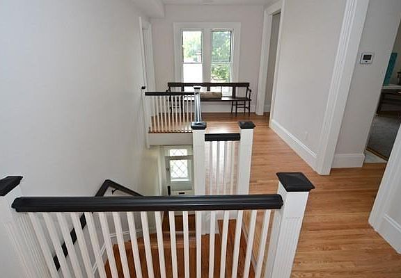 Arlington Center Gracious old world condo with all the modern conveniences. 2 blocks to Arlington Center on a quiet dead end street. Gut renovated and ready for the 21st century this 2nd and 3rd floor condo is made for easy living. Marble mantles, wide molding and high ceilings bring the added charm and character to make this a special offering. Formal living room connects to large porch. Open Kitchen and Dining room make for gracious entertaining. Marble back splash and counters hint to yesteryear but keep a contemporary edge. Master suite with large windows, private balcony,3 closets and a private bath. 2 additional bedrooms and full bath plus in unit laundry. Huge storage in lower level. Yard space for hanging out doors!!
