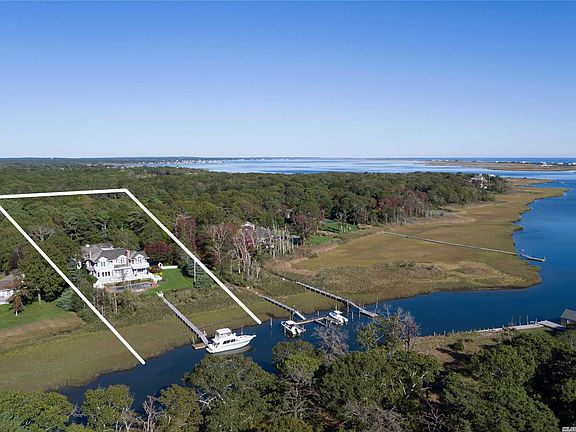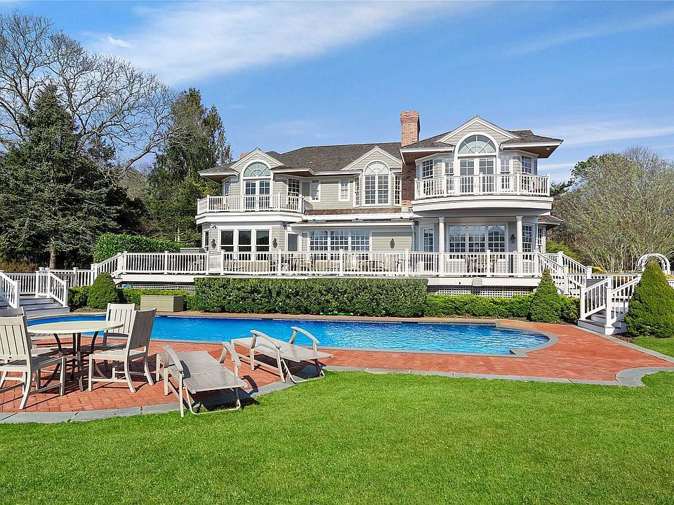 Down a private drive, this newly renovated 8 BR, 8.5 BA estate sits on 2.5 secluded acres with a deep-water dock, pool and sweeping water views. 9800 sq ft of living space includes elegant living/dining area with 2-way fireplace and wraparound windows; open kitchen with butler's pantry; sunroom; den; and study. The main wing has an airy master suite and 3 additional BR suites. Guest wing has 4 BRs and large living room. Property includes 5 garages, basketball court, and extensive landscaping.