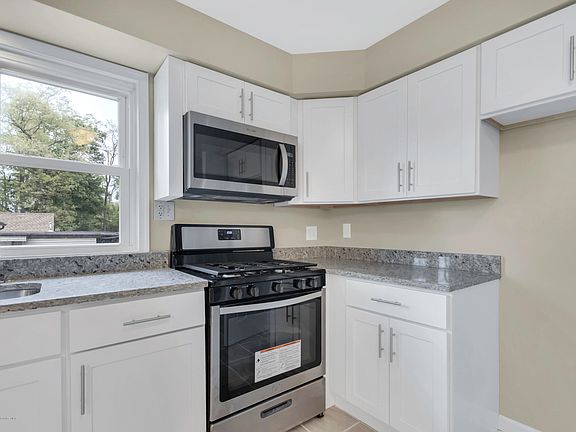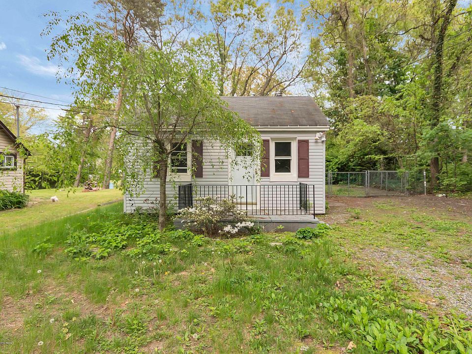 Fully renovated ranch on a rustic, wooded lot. Completely upgraded eat-in kitchen with granite countertops, stainless steel applianced. new white shaker cabinets and a pass-thru to the living room. Lots of light with large windows over sink. 2 bedrooms, 1 bath, new carpet, new doors and new paint throughout. Central Air, Forced Hot Air, Public Sewer. Quaint front porch, fenced back yard. Large storage shed for storage. Move right in!
