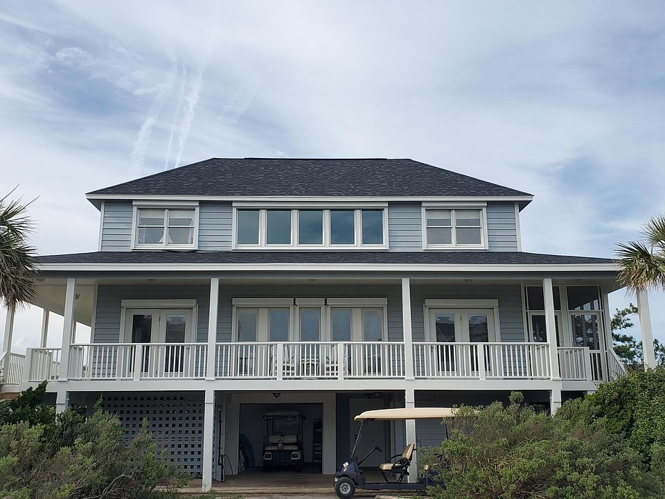 Welcome to ''Anchored Down'', a classic second row beach cottage perfect for modern beach life. Climbing the stairs to the main living level the wraparound porch invites you to anchor down and relax with a dining porch, ocean view porch, and screened porch. Once inside, you'll take note of the LVP flooring and comforting furnishings. The main level is your living level with kitchen, dining, family, laundry, half bath, and primary suite (with attached bath). Upstairs you'll find another full bath, two more bedrooms, and a loft sleeping area. There is also a large storage closet on this level that could be converted to an office or 3rd full bath. The ground level has a garage, huge storage room for all of your beach toys (big & small), and plenty of spots to hang a hammock. The home is sold fully furnished and with two golf carts. A Full Membership to the BHI Club and a Shoals Membership are available for separate purchase. The home is currently on a vacation rental program and has a great rental history!