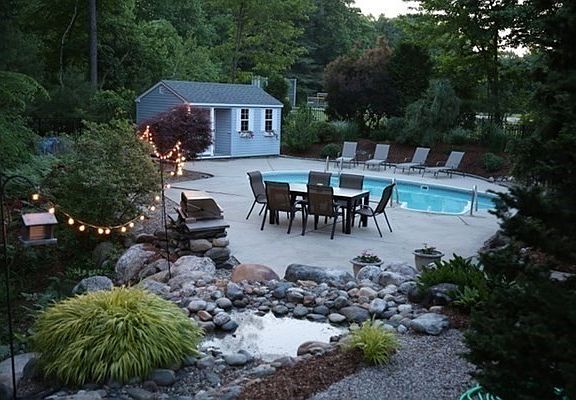 - Exterior Features: Patio, Professional Landscaping, Sprinkler System, Stone Wall, Pool - Inground Heated, Fenced Yard, Storage Shed