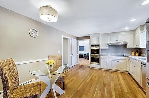 - Kit Dscrp: Dining Area, Flooring - Hardwood, Countertops - Stone/Granite/Solid, Deck - Exterior, Stainless Steel Appliances, Recessed Lighting, Exterior Access, Lighting - Overhead
