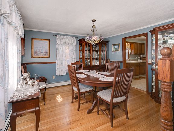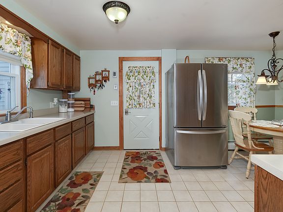 Gambrel Style home. Stairs to 2nd floor have Italian import wrought Iron spindles leading to 3 bedrooms including Master with full master bath. Bath has tile and jetted tub. Main floor Living room has wood burning fireplace with SS liner & Cap. Small 3 season Sun room off of living room with new "Lifeproof" flooring and wainscoting. Eat in Kitchen with Tile floors, Corian counters, SS appliances and builtin Corner hutch. Lower level has an additional heated room that could be used as a bedroom, office, craft room etc. The Vermont Slate breezeway leads to a deck like no other, All Trex composite decking the Lower deck is 10'x15' and upper deck is 30'x45'. Attached oversized 1 car. Upgrades also include roof in 2015, well pump 2017, septic leaching fields in 2012, Pex plumbing in 2017, Burnham Furnace 2007, new doors 2012, oil tank 2001, All carpets are 2-3 years old and have hardwood under them. Shed is from Kloter Farm 2003 and Harvey Windows throughout. Located seconds from 395, easy access to everything. Nothing to do but call the movers.