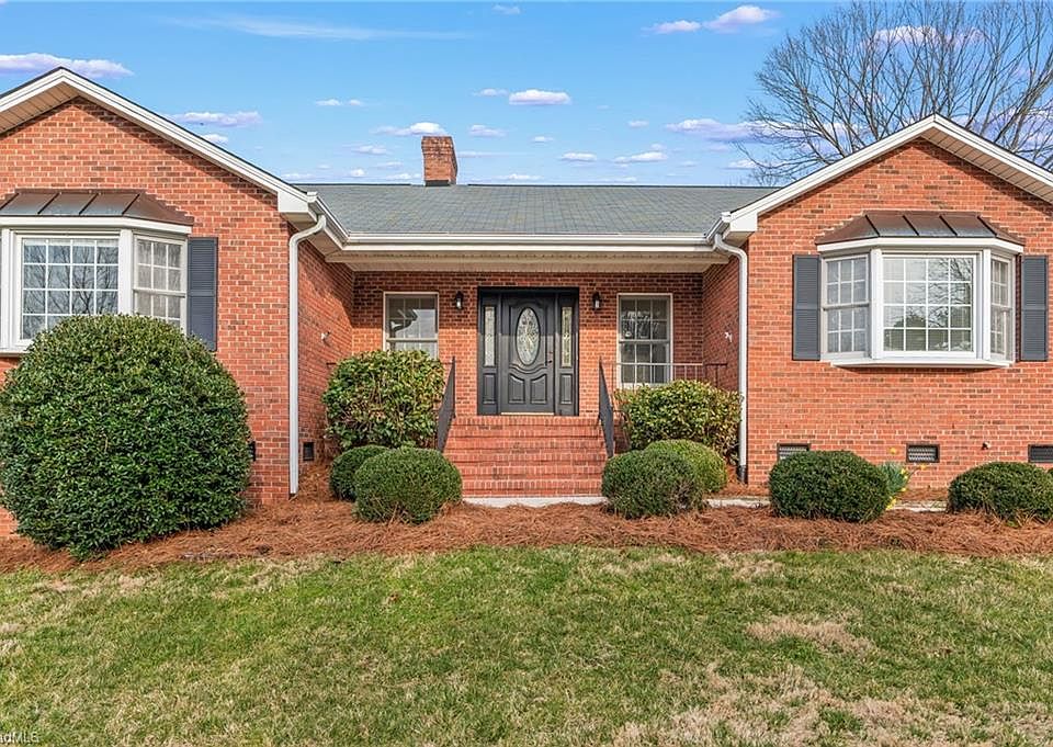 Welcome to this charming Brick Ranch nestled in a small hidden cul-de-sac on a .88-acre lot. This 1 Owner home is located within Sedgefield, a prestigious golf course community.You are greeted by a covered front porch, providing a cozy spot to enjoy your neighbors + the outdoors. As you enter, the vaulted living room captivates your attention as the streaming natural light lights up the room from the skylights. Get Ready For SPRING ~ lovely sun room offers a tranquil space to unwind. This space is versatile! ~ easily transform into a screened area, allowing you to embrace the outdoors IN! A spacious layout boasts four bedrooms, providing ample room for family & guests. Primary bedroom is situated on the right wing, offering a private retreat + outdoor access. On the left side of the home, 3 addl bedrooms provide great space, making it ideal for families + guests. Spacious Eat In Kitchen + Bar seating! Tree-lined backyd creates a natural barrier for privacy. Convenient Triad Location!