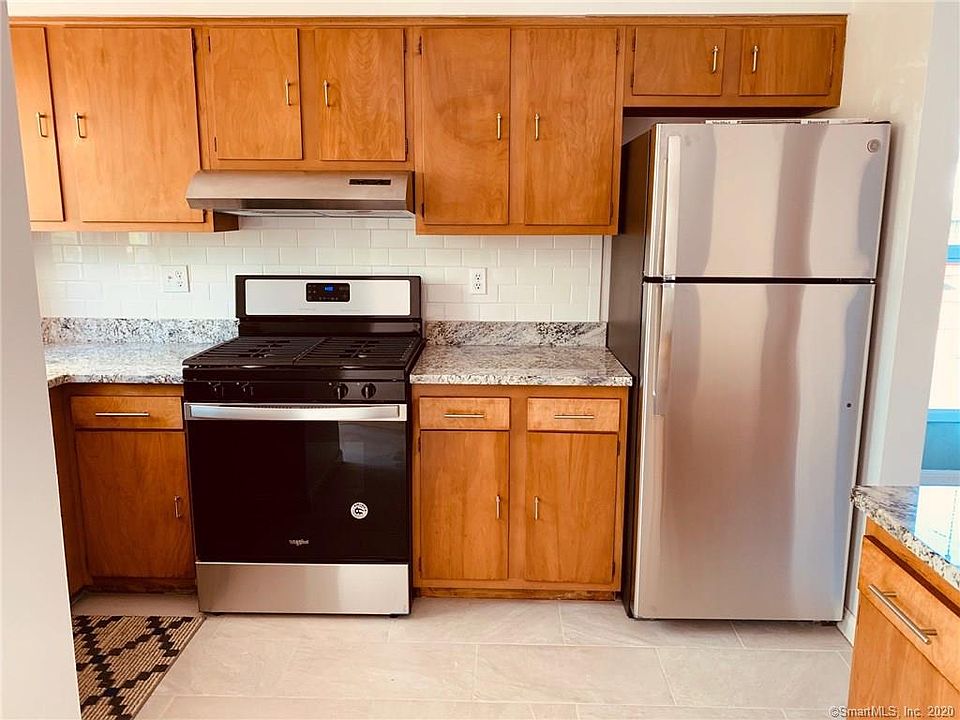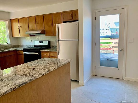 Bright and sunny spacious two bedroom apartment in walking distance to the Branford Green, shopping, restaurants and the Stony Creek Brewery! Completely remodeled end unit with open living room/dining room combination with brand new hardwood floors.Updated kitchen with granite counter tops and stainless steel appliances.The updated tile bathroom has a new shower/tub combination and stylish vanity. There is a large private upper deck perfect for enjoying the Summer weather. All rooms have brand new hardwood and tile flooring . Gas heat and gas for cooking! Central air!! Coin-op laundry in the building. Ample off street parking. No pets please.