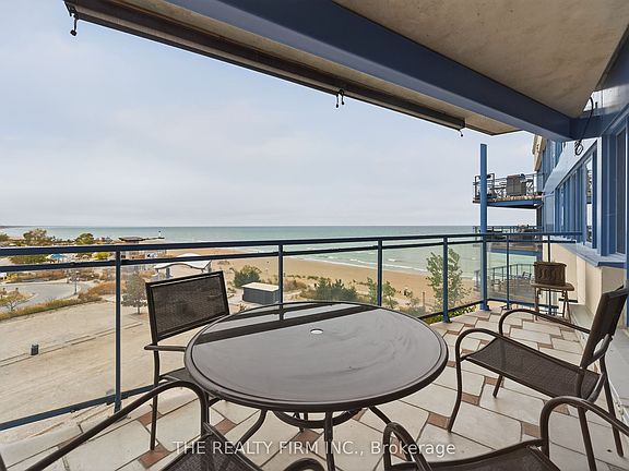 Wake up to sweeping lake views and the gentle sound of waves at your doorstep in this penthouse-like condo at 604-9 Pine Street, Grand Bend. This 2-bedroom, 2-bathroom, 1,391 sq. ft. home offers bright, open living space in a prime waterfront location along Ontario's renowned Grand Bend beach. The open-concept layout features tile and laminate flooring throughout, a U-shaped kitchen with white cabinetry and breakfast bar, and a generous living room with floor-to-ceiling windows and doors that fill the space with natural light. A mirrored accent wall enhances the sense of space, while the gas fireplace with thermostat and air conditioning provides year-round comfort. Step out from the living room to your west-facing covered balcony, ideal for BBQs, sunsets, and enjoying the lake breeze. The spacious primary suite serves as a private retreat, complete with a walk-in closet and a luxurious 5-piece ensuite featuring a double vanity and relaxing jacuzzi tub. The second bedroom and full 4-piece bath offer plenty of space for guests, with large windows in both bedrooms overlooking the water. Additional conveniences include same-floor storage lockers, a garbage chute, private assigned parking, and visitor parking for guests. Located just minutes from shopping, dining, and golf, this beautiful condo offers the ideal balance of natural beauty and coastal lifestyle. Whether you're seeking a year-round residence, a weekend getaway, or a peaceful retirement destination, this waterfront condo delivers an exceptional lifestyle at one of Ontario's most desirable beaches.