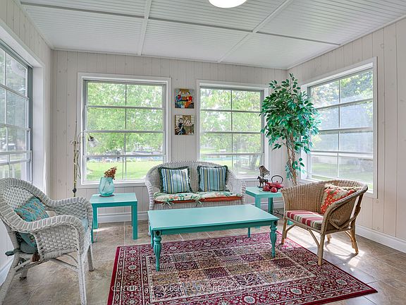 Discover the Charm of this Immaculate Waterfront Bungalow, Which Boasts an Impressive 70 feet of Picturesque Waterfront, Perfect for Enjoying Serene Fall Views. The Meticulously Manicured Yard is a True Gem, Featuring a Waterfront Deck, a Delightful Tiki Hut and a Luxurious Hot Tub, All Set on a Beautifully Level Lawn. This Outdoor Space is Ideal for Cozy Fall Gatherings, Where You can Sip Warm Beverages While Taking in the Stunning Autumn Foliage. Step Inside to Find Elegant and Inviting Interiors that Include Three Exquisitely Designed Bedrooms Prioritizing Comfort and the Enjoyment of Life's Simple Pleasures. Two Modern Three-Piece Bathrooms have been Thoughtfully Updated to Enhance Your Everyday Experience. Throughout the Home, You'll be Captivated by Bright, Beachy Colours and Tasteful Lighting, Harmonizing with Decor that Adds a Touch of Sparkle, Perfect for the Season.The Inviting Family Room Showcases a Striking Teal Brick Feature Wall and a Cozy Propane Fireplace, Creating the Perfect Ambiance for Relaxation on Chilly Fall Evenings. Engineered Flooring Leads a Seamless Flow Through the Space, while the Kitchen Dazzles with Chic Subway Tiles and an Antique-Inspired Electric Stove, Complemented by Tiled Flooring and a Convenient Butler Window for Effortless Service. Situated on a Quiet Cul-De-Sac, this Bungalow Epitomizes Idyllic Living, Complete with a Manicured Lawn that Invites You to Unwind and Enjoy the Serene Surroundings as the Leaves Change. This is More than Just a Home; it is a Sanctuary Designed for Those who Appreciate the Finer Details of Life, Especially as You Embrace the Cozy Beauty of Fall.