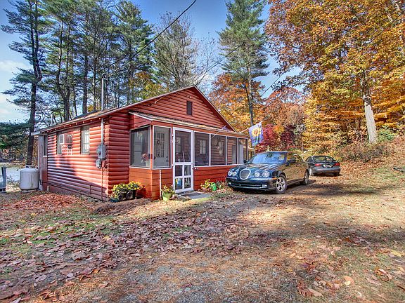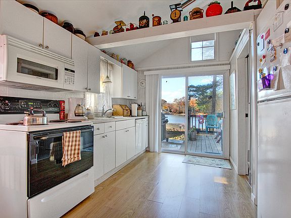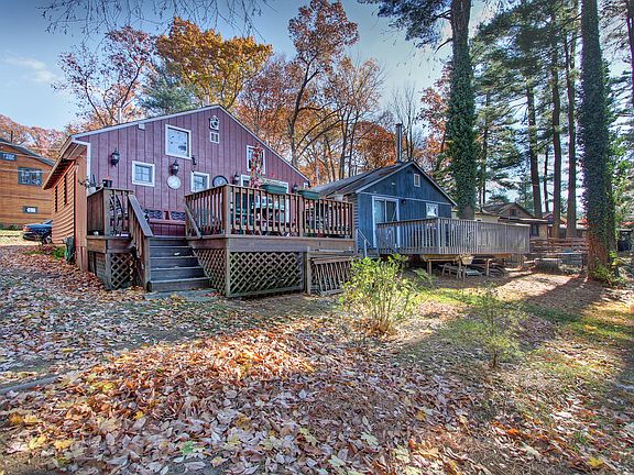Drive a few minutes off your normal commuter route and find yourself in a wonderful private community of lakeside homes, nestled among towering trees amid a serene natural soundscape. One of the original 1930's lakefront cottages, this 512 square foot home is quite the charmer. Updated to feature a soaring vaulted ceiling w/skylight in the kitchen and living room, newer appliances & cabinetry, interior paneling, and exterior siding. Enjoy kayaking, fishing, swimming, and more from your private dock, not to mention stunning sunsets & serene views from the rear deck. Whether enjoying this home as a seasonal retreat or your full-time abode, nothing beats the coziness of its cabin-like feel, down a private road surrounded by towering pines.