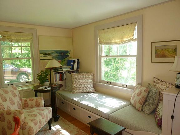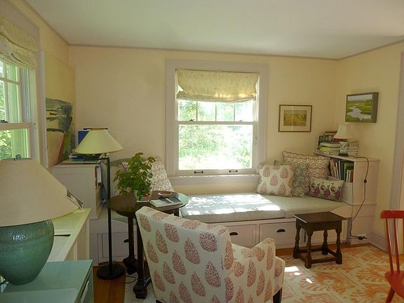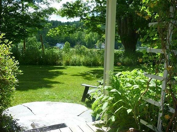 Beautiful protected view of Pumpkin Hollow is yours from this enchanting 1930's colonial within walkiing distance to the library, ballfields and pool. Features include custom wood cabinets in the eat -in kitchen, pantry area, and door to the deck with a pergola. The dining room has a charming built in window seat and cabinetry, front to back living room has a wood burning fireplace. Special south-facing addition has cathedral ceilings, many built in bookcases, and a small office, and opens to a beautifully landscaped Goshen stone patio. Master bedroom has double closets and a large en-suite bath. Two additional bedrooms and a remodeled full bath with skylight. Hardwood floors throughout. Updates include a 9 year old roof, 10 year old boiler, newer electrical panel, whole house generator, leased solar panels. Additional parcel is currently a productive hayfield but could be used for an addition, studio or solar array.
