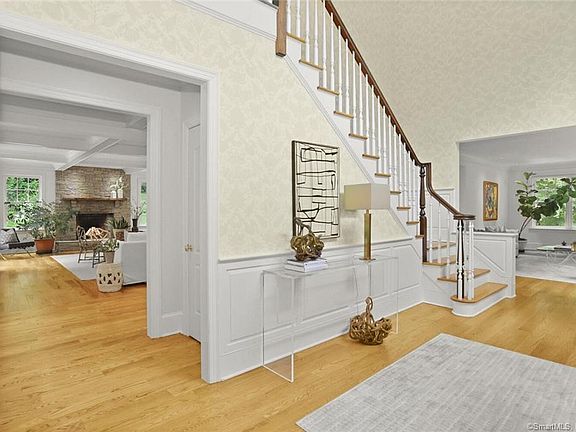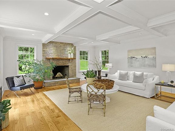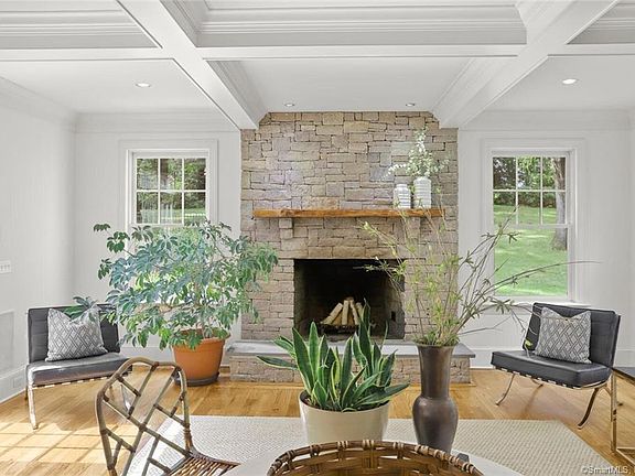 9 Plunkett Place, where cherished memories are made, and dreams and aspirations are nurtured, rooted, and grown. This is a home filled w/love and character. As you walk through the front door, you'll immediately feel the welcoming, and inviting atmosphere that makes this place special. The kitchen, is a culinary haven enveloped with a perimeter of cabinets and an abundance of counter space, wrapping around 3 walls and seamlessly opening into a peninsula. At its core, a large island takes center stage, making it an ideal hub for prep/eating/gathering/entertaining. But what truly sets this kitchen apart is the remarkable focal point – a grand hearth with wood-burning fireplace, nestled between bookcases that eagerly await your literary treasures and cherished collections. Above the hearth, a deep live-edge mantel beckons you to display your most prized possessions. This kitchen isn't just for cooking; it's a place where the warmth of good food/company come together in perfect harmony. The family room, a seamless extension of the kitchen, boasts its own unique character w/coffered ceilings adding an elegant touch, drawing your eyes upward to appreciate the craftsmanship overhead. A grand fireplace commands attention with its raised hearth and a magnificent live-edge mantel that mirrors the charm of the kitchen's. The stone surrounding the fireplace beautifully mimics the kitchen's, creating a harmonious connection between the two spaces. French doors invite in natural light, and view of the patio and pool. The family room is more than just a room; it's the heart of relaxation and togetherness, where every detail has been thoughtfully designed to create a welcoming and distinctive atmosphere. A double height foyer, formal living and dining rooms, an office and library/office and butler's pantry complete with a walk-in pantry are additional main floor features. A mud room, formal powder room and full bathroom are also located on the main level. Front and back staircases lead upstairs. The expansive yet intimate primary suite features a private hall leading to either the boudoir with fireplace and double walk-in closets or dressing room and spa bath - spacious walk-in shower, jetted tub, water closet, double sinks w/full height built-ins. Comprising the remainder of the second level are four en-suite bedrooms, a huge walk-in cedar closet, five linen closets, laundry room and a fabulous great room with vaulted ceiling - the perfect spot to gather, lounge and play. Located in the heart of Westport, close to schools, shopping and dining. Come experience this home that has been a part of the current family's lives for over 23 years and now it's ready to welcome your new memories, new stories, and new beginnings. The top floor 27 x 17 bonus room provides versatile space - sixth bedroom, playroom, in-law quarters or gym. 6 zones. Garages are located on both sides of the house with access to the three-car garage through the mudroom and the two-car garage from the staircase to the basement level. Located on a quiet and private lane, providing a sense of seclusion while still being conveniently close to schools and amenities. This home sits on a lovely piece of property featuring a large circular driveway, stone walls, a private stone patio, pool, built-in fire pit, and BBQ area, perfect for both entertaining and everyday enjoyment. Untapped potential in the unfinished attic space above bedroom #2 with striking vaulted ceiling. Note - the 3015 square foot basement is unfinished.