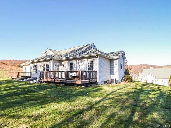 ** IT IS ALL ABOUT THE LOCATION! ** Enjoy the benefits of condo living with the feeling of having your own back yard! LIGHT AND BRIGHT! 2BR ranch set back from the road at Pond Spring Village +55 community. Open floor plan with hardwood floors throughout! Picture perfect PRIVATE location with great views! Kitchen with granite, stainless steel appliances, undermount cabinet lighting and tile backsplash; formal living room features crown molding and gas fireplace; open formal dining room. Master bedroom includes walk-in closet and full bath; second BR/den/office has access to the expansive deck overlooking the private level yard. Main floor laundry. ** THIS IS A PREMIUM LOCATION ** Community club house with billiard room, full kitchen, library, recreation room and scenic pond! Easy access for commuting. Note: public record states built in 2005; completion of this unit was 2013
