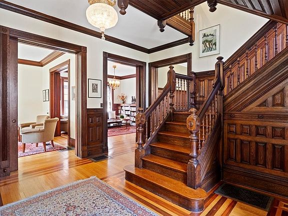Stunning 1800s colonial in the highly coveted East Ave neighborhood. A block from the Eastman Museum & Dryden Theatre, this house offers the perfect combination of pre-war charm & modern amenities. You’ll find gorgeous moldings, paneled walls, turned railings, leaded glass windows & gleaming hardwood floors! The 1st floor lives large w/ soaring ceilings & an open floor plan w/ connected living room & den & a spacious DR off the show-stopping kitchen. The formal DR features wood paneling & a stunning coffered ceiling. You’ll love entertaining w/ the 6 burner Viking range, large center island, wet bar & wine chiller. Just off the kitchen you’ll find a mudroom w/ convenient modernized full bath & a laundry room to make chores a breeze. A 2nd staircase leads upstairs to more tasteful modern upgrades in the primary suite w/ a sitting room, double closets, & beautiful modern bath. The 2nd floor also boasts a guest suite w/ 2nd full bath & a 3rd sizable BR. Spend lazy weekends w/ family & friends in the cozy FR w/ home theatre! Updated mechanics include A/C (‘18) & roof (‘16). Delayed showings & negotiations on file. Showings begin Fri 8/11. All offers to be reviewed Tues 8/15 @11am.