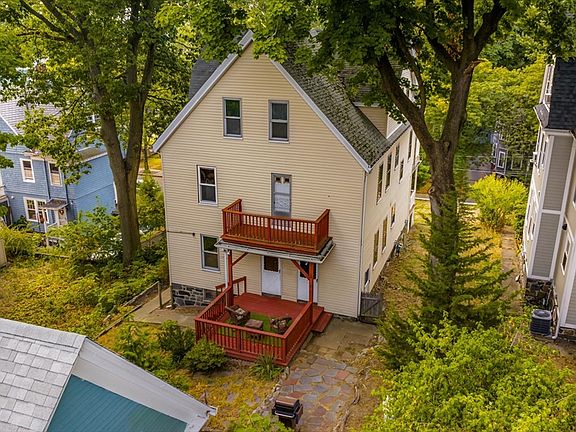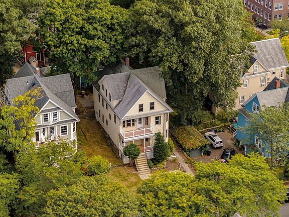 This stately 2-family building, situated high above street level, boasts wonderful rooflines and treetop views. Nestled in a coveted residential street between Davis and Ball Squares (0.4 mile to T), and adjacent to Nathan Tufts Park, it exudes the grandeur of its era and elegance. The property features ornate woodwork, beautiful fur and oak floors, bays, pocket doors, and stunning stained glass. Owner-occupied for over 60 years by the same family, it has been well maintained and boasts classic plans with generously proportioned wide rooms and large remodeled kitchens and baths. Unit 1 contains 6 rooms 2 bed 1 bath with formal living areas and an eat-in kitchen. Unit 2 offers 9 rooms 4 bed 1.5 bath with a double living space which opens to a deck, a remodeled eat-in kitchen and all 4 bedrooms on the upper floor. Systems are separated. Two car garage bays complete this offering. With over 5,500 square feet of grounds, mature trees and many decks, it lets one enjoy nature in the city!