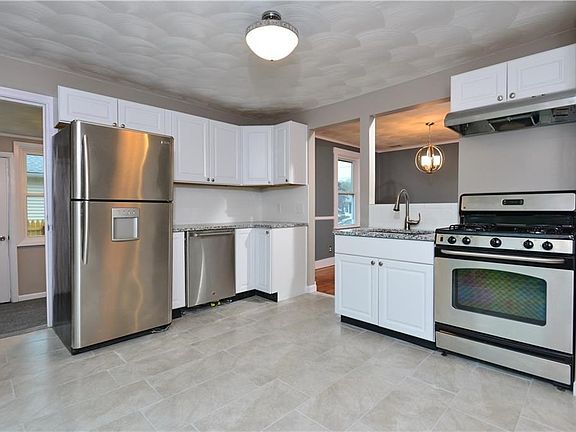This beautiful home in the Meshanticut area of Cranston has just been fully renovated. Brand new roof and windows. It has a new Kitchen with granite counters and newer stainless appliances, new ceramic tile kitchen floor, freshly finished gleaming hardwood floors throughout house, new bathroom with gorgeous tile backsplash, sliding glass doors in the kitchen that lead to a new patio and a large freshly landscaped yard. It has a Sunroom, Front Porch, and front load washer and dryer. Full walk up finished attic to use as possible storage/play room/office. Nothing to do but move in and enjoy!