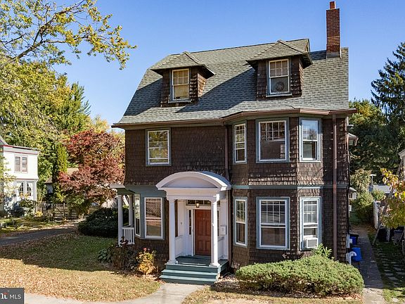 Welcome to this stunning 5-bedroom, 2 full bathroom historic home on arguably the nicest street of charming Bordentown City! Situated on a large lot, this home is truly a rare find with its unique blend of historic character and modern updates. Step through the grand entryway and prepare to be captivated. The foyer features cozy corner bench seating, a walk-in closet tucked under the staircase, and a breathtaking wood banister that sets the tone for the rest of the home. To your right, the spacious living room awaits, boasting a gas fireplace insert, gleaming hardwood floors, and abundant natural sunlight. Flow into the formal dining room, where you’ll find hardwood flooring and an original wood-burning fireplace—ideal for hosting elegant dinners or cozy gatherings. French doors off of the dining room lead to side porch. A great place to enjoy your morning coffee or your evening glass of wine. Stop through the Butler’s Pantry on your way to the kitchen. The kitchen is a chef's dream with tile and hardwood flooring, granite countertops, gas cooking and a large peninsula with seating and breakfast area. A convenient and cool back staircase from the kitchen leads upstairs. A light-filled solarium with large glass doors, full bathroom and a laundry room, complete the first floor. Venture up to the second floor to discover five spacious bedrooms all with hardwood floors and five panel doors, full bathroom, a walk-up attic on the third level offering a bonus room with endless possibilities for an additional bedroom, home office, gym or playroom. This home offers a full unfinished basement perfect for extra storage or workshop, off-street parking and a large yard, true premiums in the City! This historic gem needs to be seen to be truly appreciated. Don’t miss the opportunity to own a piece of Bordentown history—schedule your private tour today!
