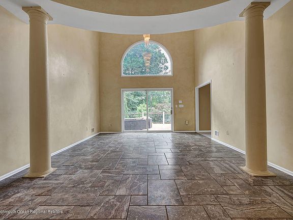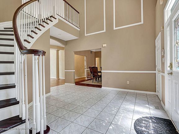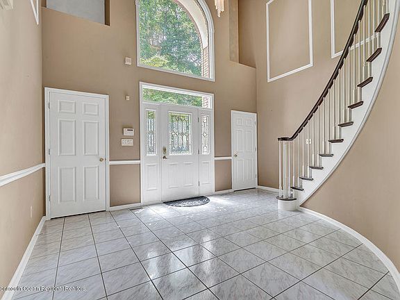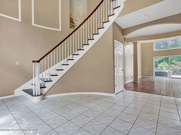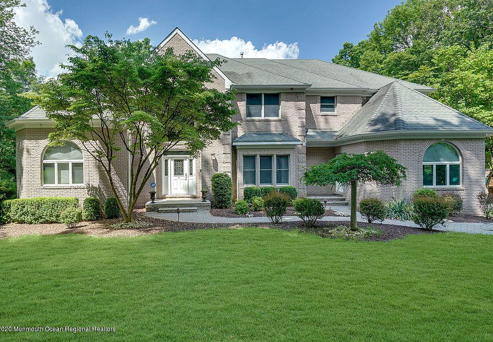 This Executive brick front custom colonial with 5 bedrooms, 4.5 bathroom and over 4500 sq ft is just waiting for it's new owner! Walk right in to the 2 story foyer with circular staircase. 2 story living room leads to deck outside. Large eat-in kitchen flows right into great room with gas fireplace! Dining room with hardwood floors! Walk up the circular staircase and you will find a balcony looking down on foyer and living room. Huge first floor master suite with 2 sided gas fireplace and sitting area! Upstairs features 4 additional bedrooms. Full finished walkout basement w/full bathroom round out the interior. Backyard is perfect for entertaining with large Trex deck overlooking the heated Gunite pool with spa! Basement walks out to the patio with bar area! This is a MUST SEE!