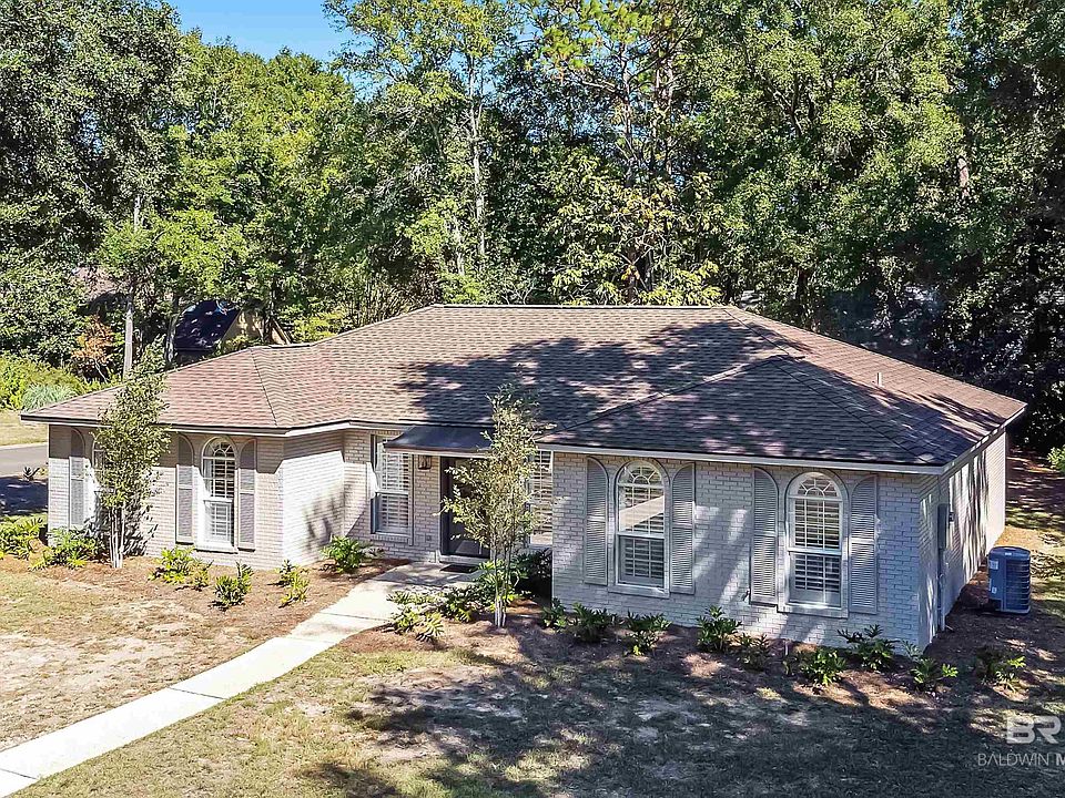 Located West of HWY 98, 1/2 mile from the heart of downtown Fairhope and a mile from the city pier, this 3/2 home has been completely renovated! New roof, new VPF and real split brick floors throughout, updated kitchen with new cabinetry, new counter tops, and new appliances. Home has been freshly painted inside and out. New recess lighting and all new light fixtures. Split floor living with large living room, separate breakfast nook, and spacious sunroom overlooking beautiful backyard. Large two car garage with easy enrty to kitchen, shaded patio adjacent to sunroom, and mature yard landscape with beautiful trees. Plantation shutters throughout and both bathrooms updated as well. Workshed perfect for storage, gardening, or a play house is also in back yard with electricity. Street is quiet and home sits on spacious corner lot. Double driveway and lots of storage. Move in ready. Nothing more to do! Great value for renovated home minutes to schools, shopping, restaurants, library, churches, and Mobile Bay. Easy to show.