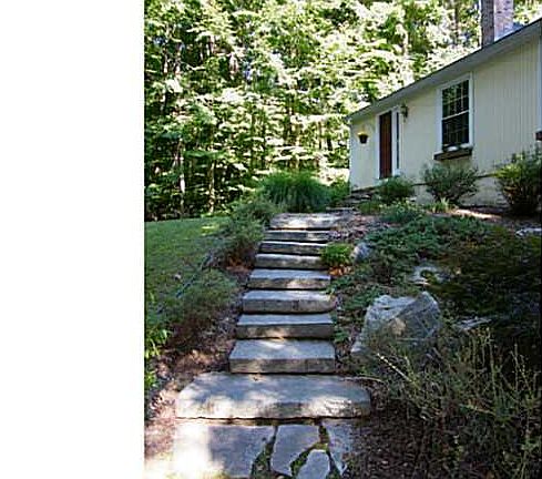 Great private setting at end of cul-de-sac. Gardens, patio overlooking Koi pond, Tiki bar with power and water. Vaulted ceilings, first floor BR, wide board wood floors, stainless steel appliances, fireplace. New roof. Property abuts conservation land.