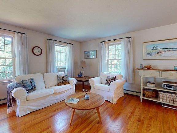 Gleaming wood floors welcome you to the expansive living room and into the informal dining room. Stunning attached family room with vaulted ceiling and plenty of windows. The open airy floor plan is perfect for entertaining, and gives you many glimpses of the tranquil setting. When it's time for meals, step into the fully-applianced spacious kitchen w/granite counter tops, pantry closet, and breakfast bar. A first floor full bath is just down the hall, and a great home office with pocket doors & storage closet is across the way. Relax at the end of the day in the primary bedroom w/skylight, sitting area, laundry closet, walk-in closet and a large ensuite bath with tile floor. Two other generous-sized bedrooms & another full bath complete the second level. Start your morning with coffee on the private deck with awning overlooking the peaceful yard, fire pit & outside shower. The roof was replaced in 2016, and heating unit & water heater in 2022. House is wired for a portable generator.