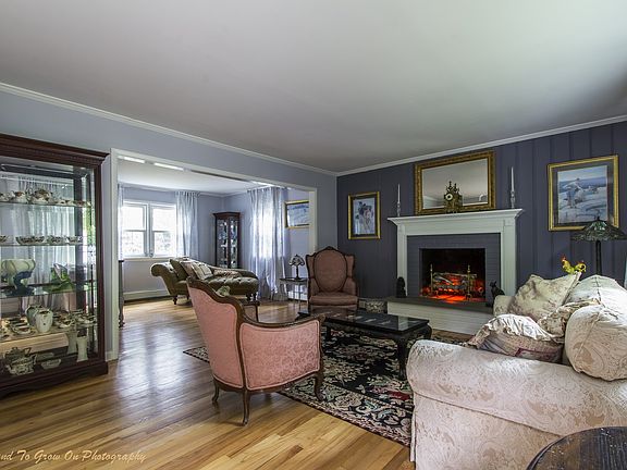 Enjoy an in town lifestyle in this adorable, updated 3 bedroom cape with a white picket fence. This sparkler has hardwood floors throughout, an attached one car garage and a partially finished basement. Many improvements have been made by the owner including an updated kitchen with granite counters, a generous work island and new appliances, A/C, new roof and chimney lining, updated electrical system, new well pump and beautiful landscaping. Living room has masonry fireplace, raised hearth and large wall of windows. Family room includes cathedral ceiling, exposed beams, ceiling fans, wood stove and sliders to very pretty deck over looking a stunning private, fenced, level yard on a cul-de-sac. A must see!