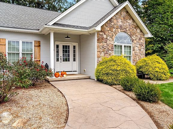 Nestled on a peaceful cul-de-sac, this meticulously maintained ranch home offers the perfect blend of modern comfort and timeless charm. The open floor plan creates a welcoming atmosphere for both daily living and entertaining.The heart of the home is the updated kitchen and adjoining family room impresses with its cathedral ceilings, gas fireplace, and rich hardwood floors, while the inviting dining room is accentuated by elegant columns.The primary suite is a private retreat with its own cathedral ceilings, a luxurious en-suite bath complete with a double bowl sink, granite tops, a Jacuzzi tub, stall shower, and a walk-in closet. Two additional generously-sized bedrooms share an updated full bath, and a sun-filled, second-level private office with a skylight offers the ideal space for remote work or creative projects. Step outside and you'll find a spacious deck leading to an AMAZING entertaining area with a grilling station, wood fire pizza oven and cabana. Whole house generator!!