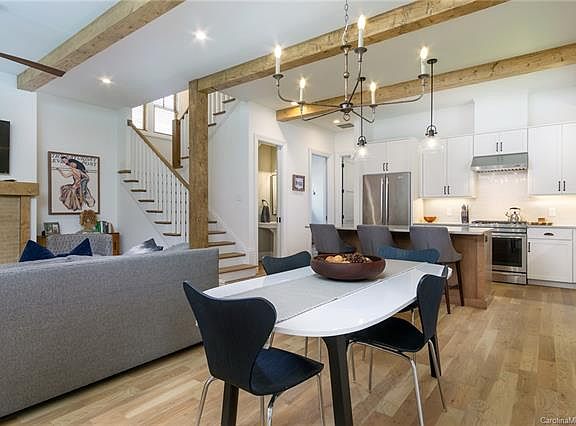 Beautiful craftsman home in the newest section of master-planned Village of Cheshire! This exquisite home offers a very rare combination of mountain views, in-town convenience, luxury finishes, and minimal property maintenance. Located less than a minute's walk to the Black Mountain Y, 3 minute walk to the Racquet Club, 1/5 mile to the restaurants in Cheshire, 1.2 miles to downtown Black Mtn., and a 12 minute drive to Asheville! Enjoy mountain views from the covered front deck or cook out on the recently added side patio with privacy fence and arbor. Main level features an open floorplan with gorgeous kitchen, wood-burning fireplace, master suite, and large mud room! Lots of kneewall storage upstairs. Built by Copperwood Builders with interior selections by Uncommon Thistle Design. Sold furnished (list of exceptions attached) - turnkey Airbnb/second home. Gas wall heat in garage. Green features include spray foam insulation, sealed crawl space, water filtration system, & humidifier.