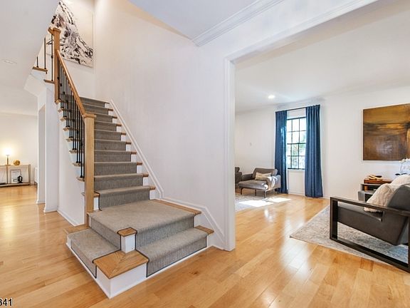 Welcome to 9 Rappleye Ct, quiet cul-de-sac in prestigious The Grande in West Orange. Fabulous 5BR, 2.1Bth 1999 residence meticulously updated w a discerning eye for design, while maintaining its heart, firmly grounded in function. This home strikes the perfect balance between relaxed, easy everyday living & effortlessly sophisticated entertaining space. From the grand double front door into the foyer, you will be thrilled by the beautiful hardwood floors throughout, the sun-drenched light & wonderful flowing layout that invites comfort w stunning style. Grand living room is light & bright. Dining room features elegant tray lighting next to a snazzy bar area w wine fridge. Meticulously updated & inspiring chef's kitchen is great for foodies & entertainers - oversized granite island, high-end appliances, farmhouse sink, abundant storage, sleek finishes with efficient & ample workspace, all flowing beautifully into the open family room w new gas fireplace & built-in bookshelves. Kitchen also features double doors out to the new deck, pet space, patio, custom lighting, firepit & manicured level backyard oasis perfect for day-to-day quiet unwinding under the stars, casual get togethers & hosting big parties. Main floor includes lovely stylish powder room, handy mudroom w enclosed utility sink. Oversized THREE car garage. Primary suite-spacious BR w sitting area, 2 generous walk-in closets & lavish ensuite bath w heated flrs, double sink, ample storage & vanity space, steam shower.