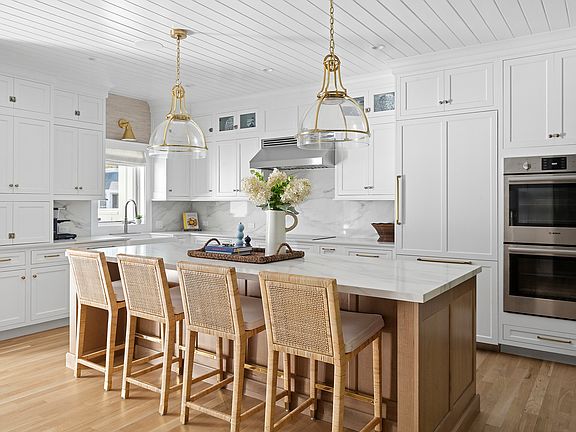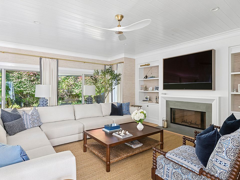 Available for rent for the first time! Set within the sought-after bayfront enclave of Mecox Landing in Water Mill South of the Highway, 9 Reed Pond Court is a newly renovated three-bedroom condo that has been thoughtfully redesigned with an open-concept layout, perfectly suited for modern living and effortless entertaining. The main level features a light-filled living room with a wood-burning fireplace, a spacious dining area, and a chef's kitchen complete with an eat-in island, extensive custom cabinetry, and top-of-the-line appliances. Sliding doors open to a private deck equipped with outdoor furniture and a grill, creating the perfect setting for summer gatherings. Upstairs, the primary suite provides a peaceful retreat with its own fireplace, private balcony, and spa-like ensuite bathroom featuring a dual-sink vanity, makeup station, and glass-enclosed shower. Two additional guest bedrooms share a beautifully appointed bathroom. Residents of Mecox Landing enjoy exclusive access to a heated gunite pool, two tennis courts, boating docks, and direct access to Mecox Bay - ideal for kayaking, paddle boarding, or simply taking in the Hamptons' coastal beauty. This exceptional property places you moments from ocean beaches, farm stands, and the best of Water Mill and Bridgehampton.