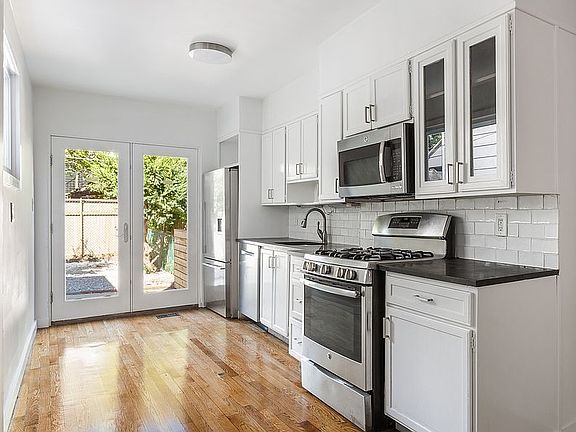 Step inside and be greeted by a perfect balance of original detail and contemporary style. The spacious garden level is expertly configured with a dreamy living room, proper dining room, and a delightful, modern kitchen, which exits to a tranquil garden paradise. Upstairs, three bedrooms (or two bedrooms with a home office) offer flexibility. The finished basement has gorgeous exposed beams, open rec space, a laundry room and a spa-like bathroom with a walk-in shower. A forced air heating and cooling system will keep you comfortable year round, while. The convenience of an in-unit washer and dryer makes laundry a breeze.