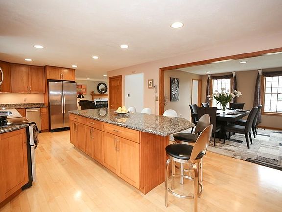 Opportunity to live in a FABULOUS NEIGHBORHOOD, this inviting BRIGHT & SPACIOUS colonial is what you have been waiting for! Amazing DREAM KITCHEN, PERFECT FOR ENTERTAINING flows into a sizable dining room. Features include an OVERSIZED GRAND CENTER ISLAND, STAINLESS STEEL APPLIANCES, GRANITE COUNTERS, an ABUNDANCE OF CABINETS & LIGHTING along with a bay window to view the SPECTACULAR YARD! Three bedrooms including a generous MASTER BEDROOM with BEAMED CATHEDRAL CEILINGS, skylights, ceiling fan and a double closet. French doors open outside to a BALCONY for morning coffee! Other features include FIREPLACED living room and FINISHED LOWER LEVEL with separate entrance leading to a family room, office & laundry room. Welcome those lazy days of summer outdoors in the backyard, an extension to this wonderful home offering multi decks, a fire pit and an above ground pool. NATURE LOVERS will find plenty to explore, with fishing and ice skating only a stones throw away! Don't miss this one!