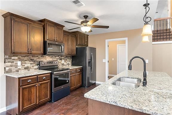 IMPRESSIVE Ranch w/BONUS Room on .63 acre on culdesac! Wide Open Living Space w/Tall Ceilings in Liv Room & SHIP-LAP FIREPLACE! Engineered HARDWOOD, TILE, GRANITE, S/S Appliances, CUSTOM CABINETS, TILE Backsplash-- ALL the Bells & Whistles!! Master Ste w/TILED SHOWER, DBL VANITIES, JETTED TUB & WIC! Covered Back Patio! No HOA! Tree lined backyard!
