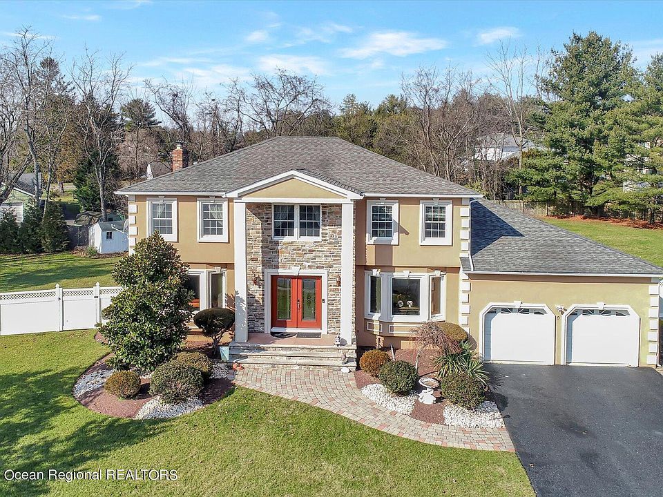 LOCATION! LOCATION! LOCATION! Here's your Opportunity to own in Highly Desirable Country Estates Located in Marlboro! Expanded & Renovated Buckingham Model Gracing the Cul-De-Sac. This Custom Colonial offers 5 Bedrooms, 4 Full Baths, Two Car Oversized garage, Gorgeous Large Inground Pool w/ Privacy & Full Finished Basement w/ Home Theatre. Upon entering the Double Doors you are greeted with an Impressive sized Foyer w/ Wrought Iron Staircase. The Foyer expands into the Living Room and Dining Room on each side with Beautiful Bay Windows & Decorative Molding. Continue on into the Bright & Expansive Eat in Gourmet Kitchen w/ Center Island that includes Granite counters, Upgraded SS Appliances, including a Viking 30'' Double Oven and 6-Burner Cook Top with SS Range Hood & Pot Filler & Sliding glass Doors to Enormous Deck. This welcoming entertaining space opens to a Large Family Room Featuring Custom Stone Wood Burning Fireplace W/ Built In Bookcases, Additional Sliding glass doors to the Deck & A Stunning Architectural Wood Beam giving added Ambiance! Also included on the first floor is a Den /Guest bedroom,A Full Bath & Laundry Room w/ Door to the backyard/ Deck.Venture to the second story!Large Master Suite Features Hardwood Floors,WIC & a Stunning Master Bath w/ His & Her Granite Sinks,Custom Cabinetry,Vaulted Ceilings, Amazing Oversized Shower w/Body spray Jets & Luxury Woodbridge Toilet/ Bidet. Three Generously sized Bedrooms all w/ Large Closets. Updated Full Bath w/ Custom Cabinetry & Double Vessel Sinks,Granite & Luxury Woodbridge Toilet Bidet, Attic w/ Pull down Stairs. Full Finished Expansive Basement W/ Home Theatre & Full Updated Bathroom.Completing this welcoming property is a Private fully fenced Backyard featuring an Enormous Trex Deck off the Kitchen & Family Room where you will find a place to relax overlooking the stunning 20 By 40 Inground Pool w/ Pavers & Safety Pool Cover. This spacious lot is Fenced & surrounded by trees for the best PRIVACY and plenty of room for outdoor gatherings! Located close to all major transit and shopping, not to mention one of the top school districts in the state, this one is surely one you don't want to miss!! SELLER HAS PURCHASED A HOME WARRANTY FOR THE NEW OWNER !!