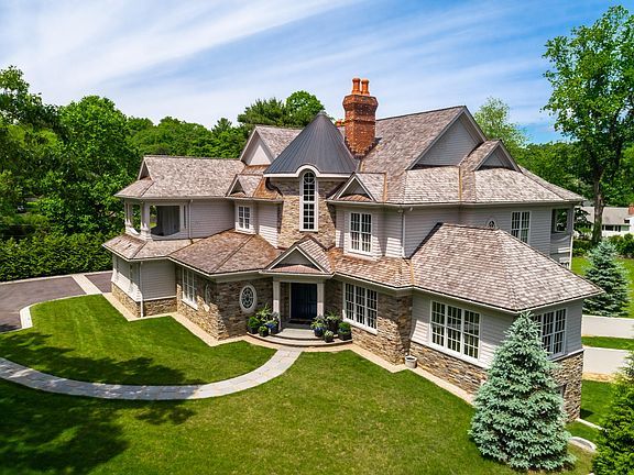 Poised on a beautiful acre just minutes to town, schools and Metro North, this home is a masterful blend of sophistication and casual livability. From the moment you enter the triple height foyer with an elegant staircase, it's apparent this is a special offering. An open flow throughout the first floor includes a formal living room and dining room anchored by a large, limestone fireplace. The spacious family room allows for multiple seating areas and easy access to a kitchen that will impress the most discerning eye. Designed with an English flair, the gourmet kitchen is a chef's dream with multiple refrigeration, four ovens and a butler's pantry. A sun-filled breakfast room is ideal for your morning coffee and newspaper. A first floor bedroom and bath is available for guests