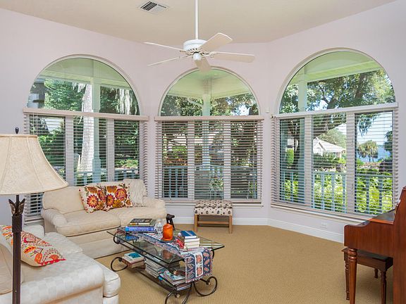 INDIAN RIVER VIEWS from living room - and wraparound porch area. Gated waterfront community with slips on Indian River - 3 currently open to residents. Executive custom built home with BEAUTIFUL windows overlooking garden views and Indian River. Great room with 20 feet ceiling height -with centered FIREPLACE . FRENCH DOORS in great room leading to back patio that extend tru length of the house. GORGEOUS TROPICAL HAMMOCK and RIVER BREEZE on the back yard . Built in wine center . HUGE family size kitchen with island and bbar .Master suite on main level offers walk in closets and nice master bath. Guest bedroom and 2 nd bath perfect for office space. Upper level has loft like area and 2 large bedrooms with 3 rd bath. Circular drive and estate like setting. Double pane windows/generator/newe