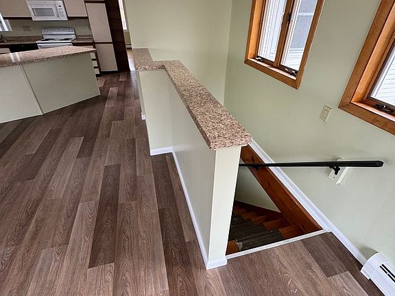 The house has brand new vinyl plank throughout the kitchen and the entire unit was just painted. New gutters outside as well as new light fixtures in many of the rooms.