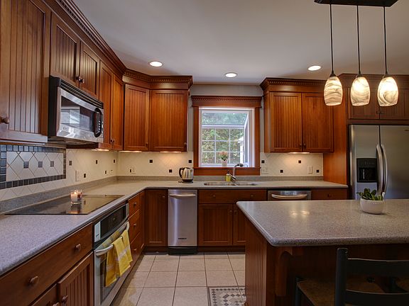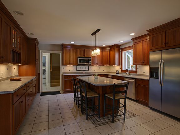 Beautiful 4 Bedroom 3 Bath Colonial nestled in privacy on 5.2 acres at the back of the desirable Fort Hill Farms neighborhood features a gorgeous spacious cherry kitchen with lots of counter space and cabinetry w/under cabinet lighting, breakfast bar island, stainless steel appliances, and dining area overlooking three-season porch and deck with hot tub for relaxing outside in privacy. You'll appreciate the wonderful family room with built-in library, exposed brick, and propane fireplace open to the formal dining room and additional living room offering great space for entertaining guests. Second floor features four spacious bedrooms, including the master suite, and a bright spacious family room above the 2 car garage to relax, exercise or entertain. Wonderful in-ground pool, a farmers porch, and well landscaped grounds highlight the exterior of this beautiful home.