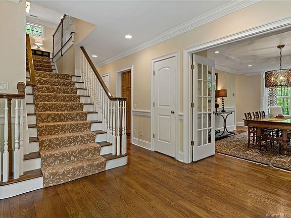 This beautifully constructed riverfront home is filled with architectural details and exceptional features. The exterior has a pillared entry and Belgian block drive and court. Copper gutters, stone patio and balconies and decks to take in the view. Inside the home there are crown moldings, French doors and dramatic windows throughout the home. Wide board oak floors and two wood-burning fireplaces add warm and character. The master suite has a private balcony and a luxurious master spa bathroom with bubble jet tub, huge stone shower, and radiant heat floor. All of the gracious sized bedrooms have luxurious baths. The home has a smart home music system for music inside and outside the home and a whole house generator to keep you safe during storms. The chefs kitchen, with 8-burner Wolf range and Subzero appliances, has cherry cabinets and granite counters, with ample space for everyone. No expense was spared in the construction of the wonderful home. Minutes from everything Westport has to offer, this wooded compound is a natural luxury to sink into-- still, quiet, nestled in an unspoiled world that is alive with the early morning calls of birds and the sounds of the river rolling towards the sound. You might see an egret stalking its breakfast, as you stroll down a path to your private adirondack chairs on the rivers edge, the kayaks, the fishing gear and your own connected islands your own private paradise at Rivers Edge.