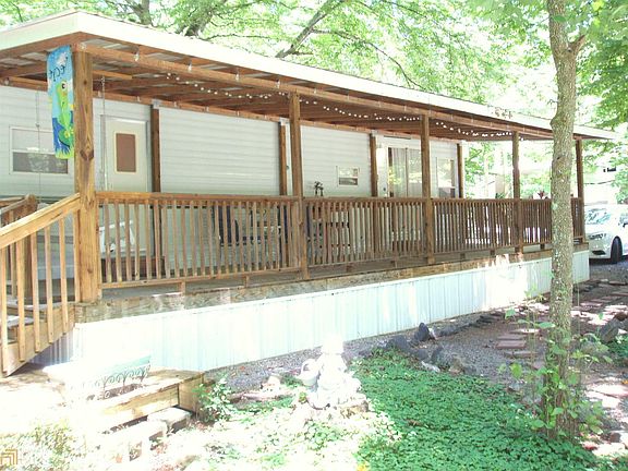 CHATTAHOOCHEE RIVER ACCESS. This park model has two lots and is in a very nice RV park that is located on the Chattahoochee River with a common area and dock to enjoy boating,fishing,and socializing on the river. Park model has a large covered front porch and two outbuildings. One building has a deck and air conditioner.The other outbuilding is being used for storage.This property comes furnished and is turn key ready to enjoy.Location is convenient to Helen,Cleveland, and Unicoi State Park.High speed fiber optic internet is available.