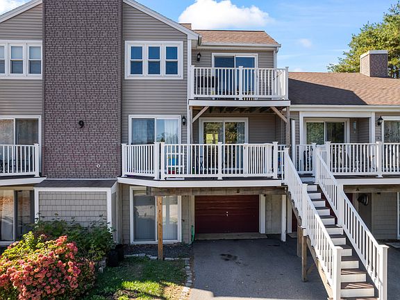 Welcome to Unit B at 9 Riverview Drive in North Berwick. This townhouse features three levels of comfortable living space, filled with bright, sunny rooms, high ceilings, and a skylight. The main level boasts an open-concept living and dining area, complete with two sets of sliders that flood the space with natural light and lead to the lower deck for outdoor enjoyment, along with a convenient half bath. The spacious kitchen is equipped with plenty of cabinetry for all your storage needs and offers a lovely view of the backyard. On the third level, you will find two bedrooms, each featuring ample closet space and access to a shared deck, as well as a full bath. Additionally, the ground level includes finished living space that can serve various purposes—such as a family room, den, or office. This level also houses a one-car garage, a laundry room, and additional storage space. Pheasant Hill Condos are beautifully situated on approximately 28 acres along the Great Works River.