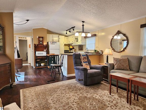 This 3BR, 2 bath, 1995 Skyline mobile home is located in Evergreen Village. The peacefulness of the Pine River is just across the street with beautiful views, sounds of ducks & geese and the opportunity to toss in a fishing line. The condition of the home has seen numerous updates since 2017, including kitchen updates, both bathrooms, flooring, water heater, light fixtures, plumbing fixtures and the built-in entertainment center all making this home very enjoyable. At closing the buyer to pay the sales tax & the seller to pay the transfer fee. Subject to park approval of the buyer. Park Manager is tammy (989-681-2953). Lot rent is $453/mo. which includes trash, water & sewer.