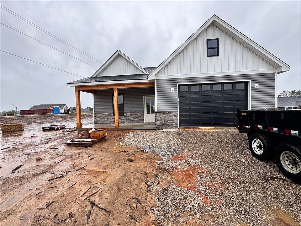 Welcome to 9 Robert Allen Lane in the beautiful Miller Woods community! This brand-new 4-bedroom, 2-bath home is perfect for those looking for single-level living with no stairs. Situated on a corner lot, this home has great curb appeal with a concrete poured driveway and sidewalk. You’ll love the hassle-free sod installation, so you can skip the process of growing grass from seed. Inside, the home is filled with high-end upgrades, including spray foam insulation for energy efficiency and a dual fuel propane/electric furnace. The primary suite offers a relaxing retreat with a separate shower and soaking tub. Both bathrooms feature custom tile work, adding a touch of luxury. The kitchen is a standout with stunning granite countertops, making it the perfect space for entertaining. Enjoy endless hot water thanks to the tankless Rinnai water heater, and gather in the open-concept living area featuring a cozy gas fireplace. Step outside to enjoy peaceful mornings or evenings on the covered front and back porches, where you can watch the sunrise or sunset. This home is set for completion by October 31, 2024—just in time to make it your own! Don’t miss out on this stunning new construction home in Miller Woods. Interior photos are of similar style house.