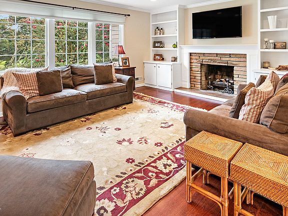 - RoomLivingRoomFeatures: Dec Molding, Floor - Wood, Fireplace - Woodburning, Built-Ins