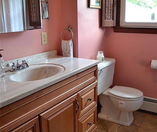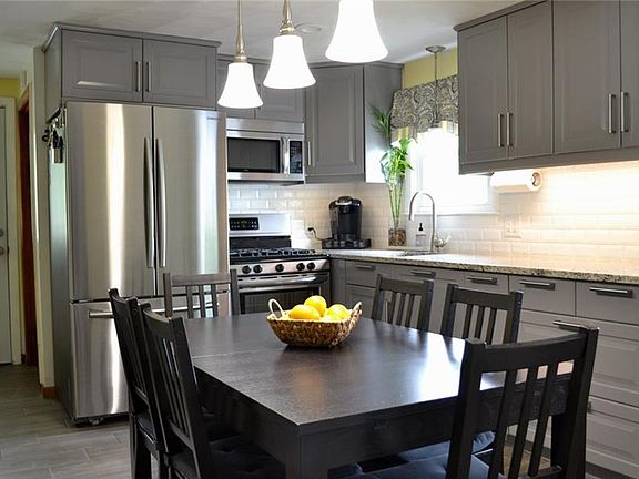 Smart start or empty nester! 3 Bedroom Ranch featuring new cooks kitchen with granite and stainless appliances. Updated bath, gas FHW baseboard heat, gas hot water, hardwoods, ceramic tile, rec room in lower level. Maintenance free vinyl siding too. Subject to Seller finding suitable housing.