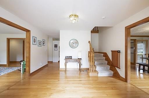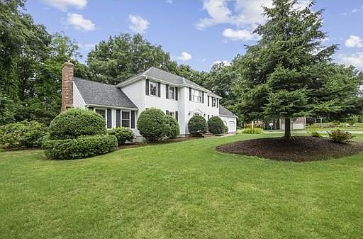 Stately Center Entrance Colonial in Desirable Executive Neighborhood. This impressive home features beautiful hardwoods, Generous sized & appointed kitchen with breakfast peninsular seating for 4 and table area overlooking the 3 season sun room. French door into dining room w/hardwood, Large Living room w/hardwood. Private library features custom built-in cabinetry & hardwoods. Expansive fireplace family room w/cathedral ceilings. Welcoming master suite with generous sized bedroom, large master bath w/dual vanity, jetted soaking tub, shower, Walk-in closet with additional storage space beyond. Three additional good sized bedrooms plus full skylight main bath. Finished lower level perfect for a home office and media/playroom. Updates include 2018 Rodenhiser Gold Heating & A.C. package... see listing, 2 new garage door, 2019 updates - 37 window pane's, Gutter cover system. Insulation attic & basement. Professionally landscaped yard makes this house the perfect home!